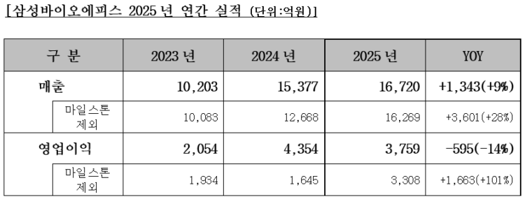 Le chiffre d'affaires, hors jalons, s'élevait à 1,626 milliards de wons, soit une augmentation de 360,1 milliards de wons (28 %) par rapport à l'année précédente (1,266 milliards de wons). Les jalons sont des revenus ponctuels provenant de contrats de transfert de technologie et ne se répètent pas à chaque fois.