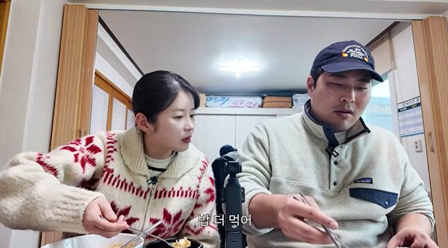 キム・スンヘは最近、自身のYouTubeチャンネルに夫のキム・ヘジュン、「ピシク大学」のメンバーたちと一緒に栄養氷祭りを訪れた動画をアップした。寒さの中でも祭りを楽しんだ彼らは、その後レストランに移動し、キム・スンヘはあっという間にご飯を一杯食べたキム・ヘジュンに「もっと食べて」と気遣った。